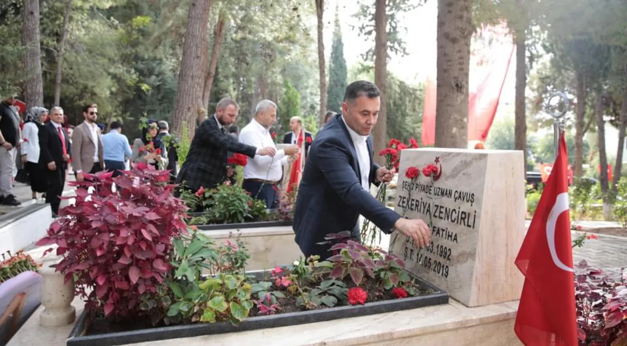 Alanya Belediye Başkanı Adem Murat Yücel, Cumhuriyetin 100. yılı vesilesiyle MHP Alanya İlçe yönetimi ve Alanya Belediye Meclis Üyeleri ile bu mukaddes topraklar uğruna şehit düşen vatan evlatlarını kabri başında anmak adına Alanya İlçe Garnizon Şehitliği’ni ziyaret etti. Ziyarette şehitler için dua edilip, kabirlerine karanfil bırakıldı