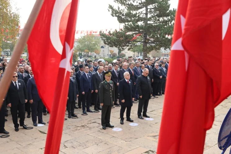 Sivas Valisi Yılmaz Şimşek, Garnizon Komutanı Cüneyt Mutlu ve Belediye Başkanı Hilmi Bilgin tarafından Atatürk Anıtı’na çelenk sundu.