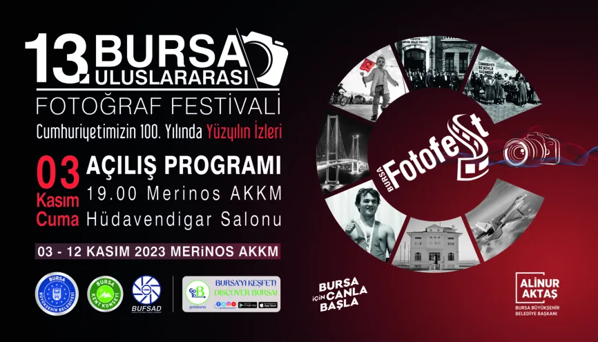 BursaFotoFest, her yıl bir tema üzerine kurgulanıyor. Bu senenin konusu ise ‘Yüzyılın İzleri’. Festival, Cumhuriyet’in bugüne ulaşmasında kişi, kurum, siyasi ve kültürel iz bırakanlarının izdüşümleri ile Dünya’daki örneklerini sergileyecek. Ayrıca sanat, kültür, endüstriyel üretkenlik, günlük yaşam biçimleri, önemli toplumsal ve bireysel olayları belgelemek ya da fotoğraflamak ise festivalin alt başlıkları. BursaFotoFest’in açılış töreni 03 Kasım 2023 Cuma günü saat 19.00’da Merinos AKKM Hüdavendigar Salonu’nda yapılacak.
