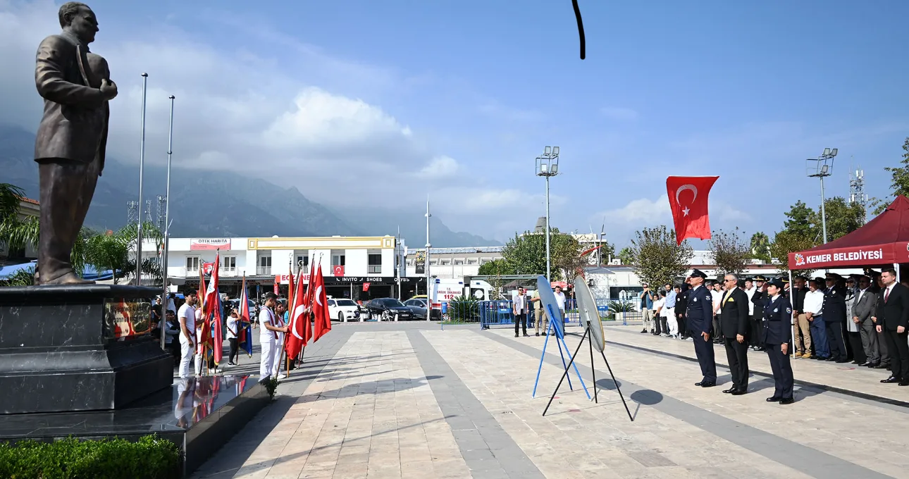Kemer Cumhuriyet Meydanı’nda yapılan törene, Kemer Kaymakamı Ahmet Solmaz, Kemer Belediye Başkanı Necati Topaloğlu, Kemer Cumhuriyet Başsavcı Vekili Serhat Çaylak, Kemer Jandarma Komutanı Ömer Seyhan, Kemer Emniyet Müdürü Harun Mere, belediye meclis üyeleri, belediye birim müdürleri, siyasi parti temsilcileri, kamu kurum ve kuruluşların temsilcileri, gaziler, muhtarlar, öğretmenler ve öğrenciler katıldı.