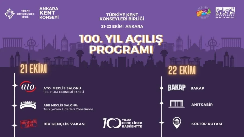 Etkinlik, 21 Ekim Cumartesi günü, Ankara Kent Konseyi (AKK) Binası’nda gerçekleşecek açılış programı ile başlayacak. Kent konseylerinin geleceği üzerine yapılacak görüşmelerle başlayacak buluşmada 81 ilden gelen gençler, görüş alış verişinde bulunacak. Türkiye Kent Konseyleri Birliği ve Ankara Kent Konseyi Başkanı Halil İbrahim Yılmaz ve Yönetim Kurulu Üyeleri gençlerle bir araya gelecek.