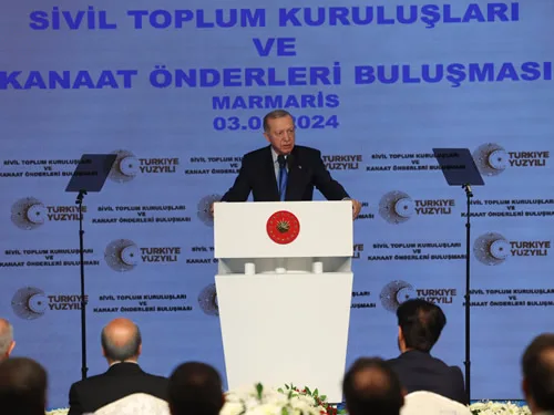 Muğla programı kapsamında Marmaris’te bir otelde düzenlenen Sivil Toplum Kuruluşları ve Kanaat Önderleri Buluşması’nda katılan Cumhurbaşkanı Recep Tayyip Erdoğan, Türkiye’yi yatırım, istihdam, üretim, ihracat ve cari fazla yoluyla büyütme stratejisini kararlılıkla uyguladıklarını söyledi.