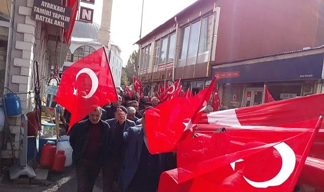 Türk bayrakları ile ilçe merkezinde toplanan kalabalık halk topluluğu İHH Derneğinin organize ettiği protesto eyleminde ”Katil İsrail”, “Kahrolsun emperyalizm” ve “Filistin’e selam, direnişe devam” sloganları eşliğinde Oltu caddesinden Cumhuriyet parkına kadar yürüyerek İsrail’i kınadılar.