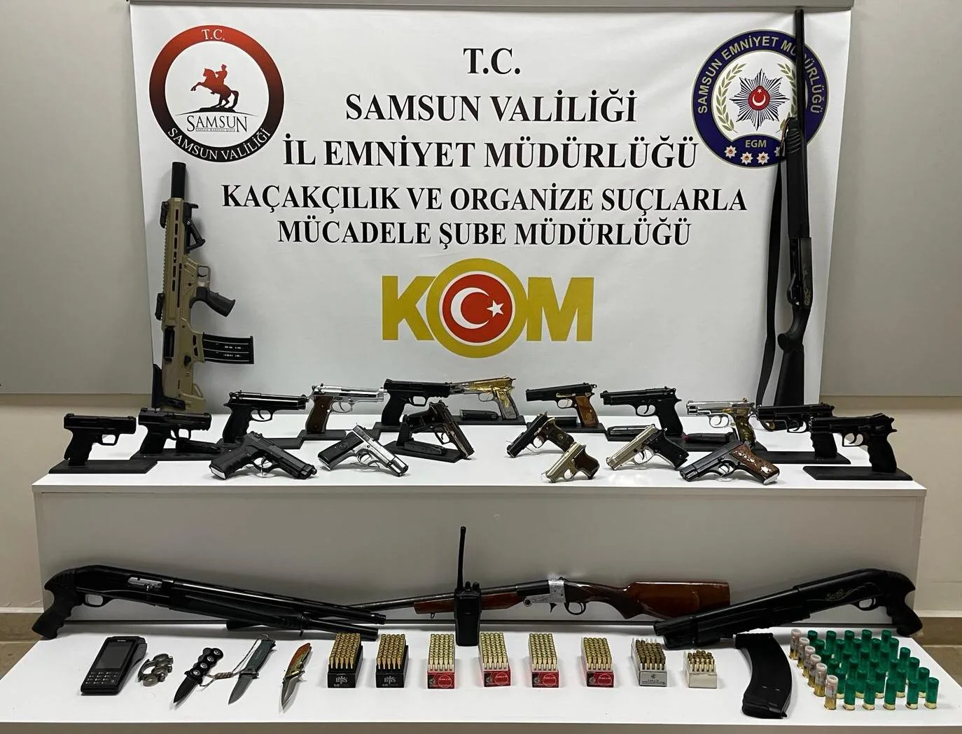 Samsun Emniyet Müdürlüğünce yapılan operasyonda, Suç Örgütü Kurmak ve Yönetmek, (TCK 220/3) Nitelikli Yağma, Kasten Öldürmeye Teşebbüs, Silahla Yaralama, Örgütlü Silah Ticareti, Resmi Belgeyi Yok etmek-gizlemek, Çocuklara suç üstlendirmek, Suçluyu Kayırma soruşturması kapsamında gözaltına alınarak, Adli Makamlara sevk edilen 11 şüpheliden; 8’i tutuklandı. 1 kişi ev hapsi olmak üzere 3’ü adli kontrol kararıyla serbest bırakıldı.