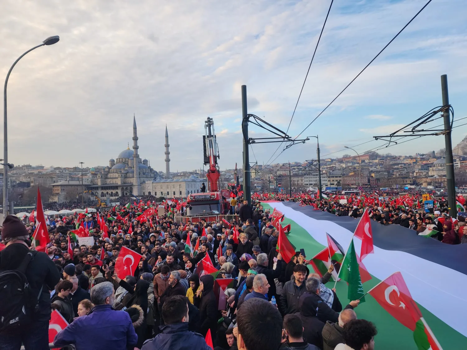 Yürüyüşe katılan kalabalık Eminönü Yeni Camii, Ayasofya-i Kebir Cami-i Şerifi,  Sultanahmet Camii ve Süleymaniye Camisi’nde sabah namazının kılınmasının ardından cami önlerindeki alanlarda toplandı.